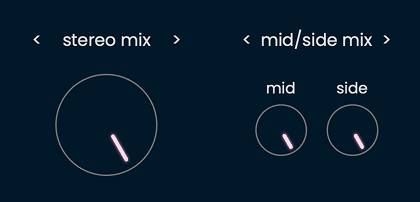 Mid/Side mix mode can be accessed by clicking "stereo mix" to toggle between stereo and mid/side. This allows you to blend in the processed signal to either the mono center or the side signal for soundstage effects or special cases.